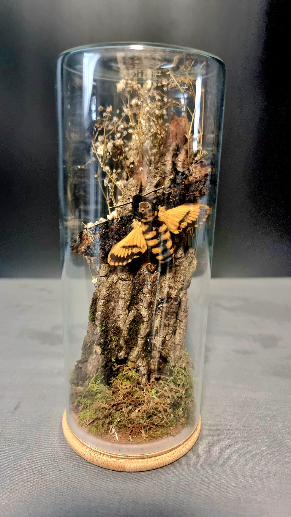 This project showcases a variety of artistic designed Taxidermy and pinned inverts, including depictions of spiders, beetles, butterflies, and other naturalistic elements and movie themes. These Taxidermy and pinned pieces are displayed in shadow boxes, framed displays, and under glass domes, creating a visually captivating experience.